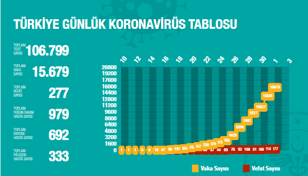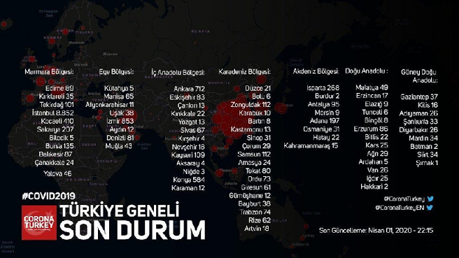 Sağlık Bakanlığı tarafından 31 Mart 2020 tarihli, Türkiye Günlük Koronavirüs Tablosu paylaşıldı.