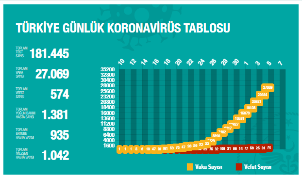 Bu tabloya göre salgının Türkiye tablosu;
