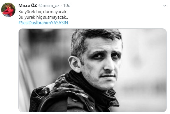 "Müvekkilimiz İbrahim Gökçek bugün Ölüm orucunun 320.gününde! Talepleri haklı, meşru ve karşılanabilir taleplerdir. Grup Yorum bu vatanın türkülerini birlikte alanlarda umutla söylemek için direniyor. Bir sanatçı daha sanatı için ölüyor bu ülkede duymuyor musunuz? İbrahim yaşasın işte sanatını yapsın halkın acısını ve sevincini paylaşsın, neden türkülerden bu kadar korkuyorsunuz?
