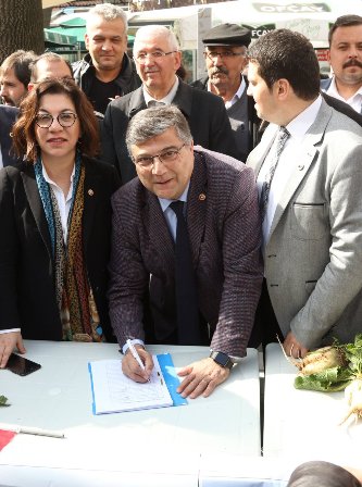 Uşak Şeker Fabrikası önünde, CHP Milletvekilleri Kamil Okyay Sındır, Burcu Köksal, Melike Basmacı, Tur Yıldız Biçer ve Özkan Yalım tarafından başlatılan imza kampanyasına üreticiler ve yurttaşlar destek verdi.