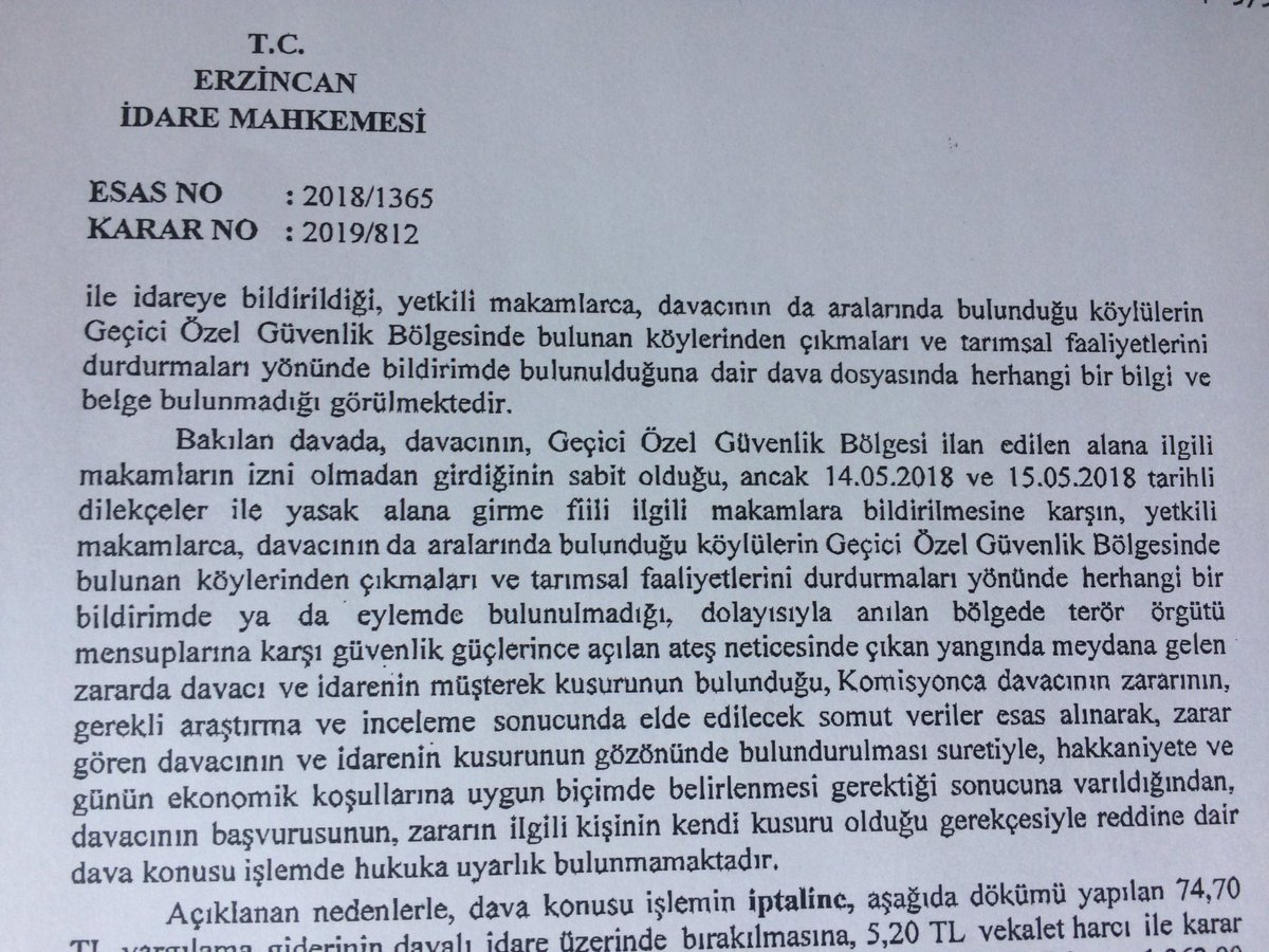 Erzincan İdare Mahkemesi, 'Özel Güvenlik Bölgesi' ilân edilen yerde bulunan köyüne giderek arıcılık yapan köylünün zararının 'kendi kusuru sonucu oluşan' zarar olmadığına; devletin sorumlu olduğuna karar verdi. Mahkeme 2018 yazında Geyiksuyu ve çevresinde haftalarca devam eden ++ pic.twitter.com/JA1hU5oGwv
