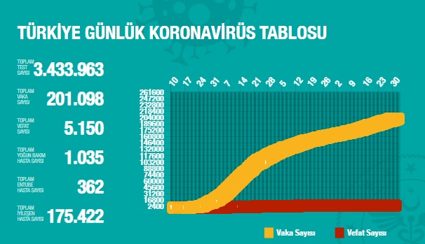 Bu tabloya göre salgının Türkiye tablosu;