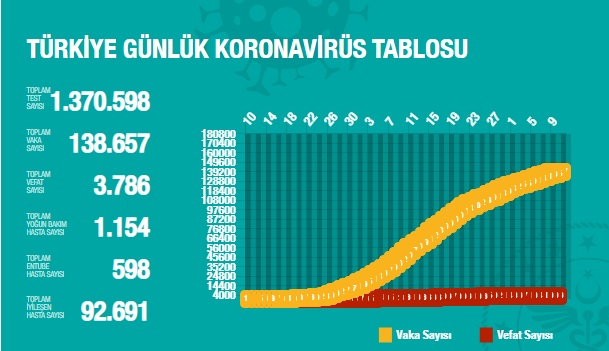 Bu tabloya göre salgının Türkiye tablosu;