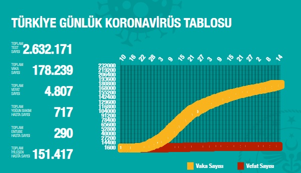 Türkiye'de 14 Haziran'da Covid_19'dan 15 toplamda 4.807 kişi öldü