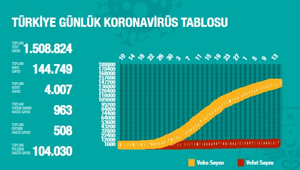 Türkiye'de 14 Mayıs'ta Covid_19'dan 55 toplamda 4.007 kişi öldü