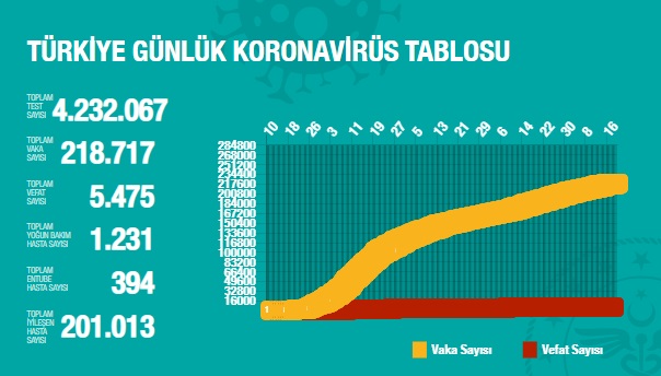 Türkiye'de 18 Temmuz'da Covid_19'dan 17 toplamda 5.475 kişi öldü