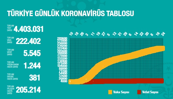 Bu tabloya göre salgının Türkiye tablosu;