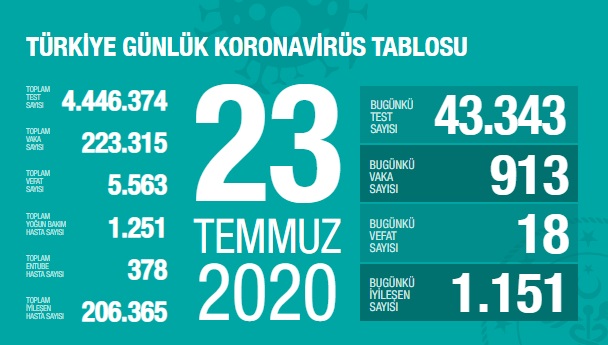 Türkiye'de 23Temmuz'da Covid_19'dan 18 toplamda 5.563 kişi öldü