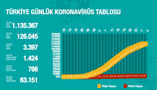 Türkiye'de 3 Mayıs'ta Covid_19'dan 61 toplamda 3.397 kişi öldü