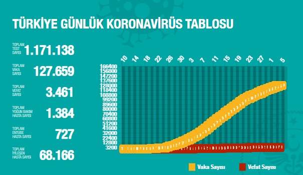 Türkiye'de 4 Mayıs'ta Covid_19'dan 64 toplamda 3.461 kişi öldü