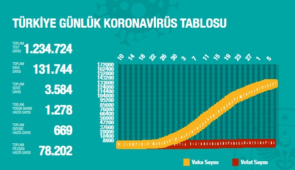 Türkiye'de 6 Mayıs'ta Covid_19'dan 64 toplamda 3.584 kişi öldü