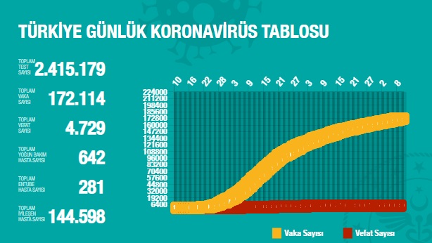 Türkiye'de 9 Haziran'da Covid_19'dan 18 toplamda 4.729 kişi öldü