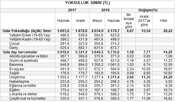 2018 yılının ilk yarısında açlık sınırı yüzde 15,54, gıda dışı harcamalar yüzde 7,77 ve yoksulluk sınırı da yüzde 9,8 oranında artış gösterdi.