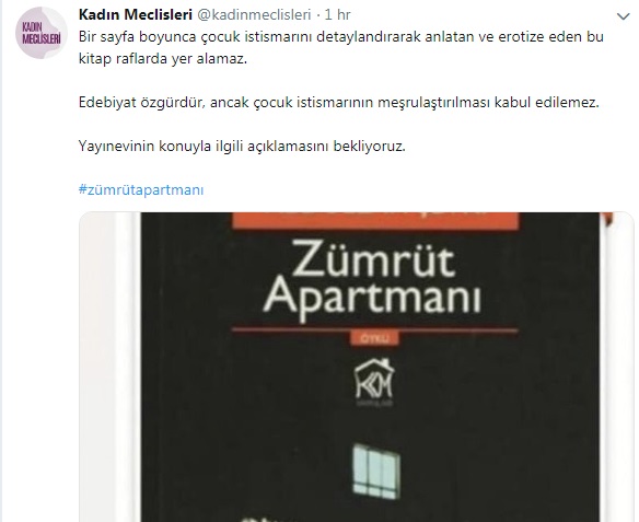Kurgu Kültür Merkezi Yayınları etiketiyle yayınlanan Abdullah Şevki'nin Zümrüt Apartmanı kitabında, pedofili içeren öğelerin yer aldığı ortaya çıktı.